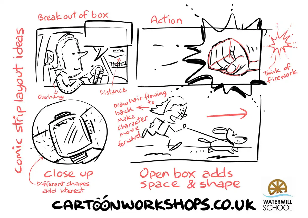 Cartoon workshops drawing class – A small group for beginners to learn comic cartooning tips over two hours. Contact us for current lessons.